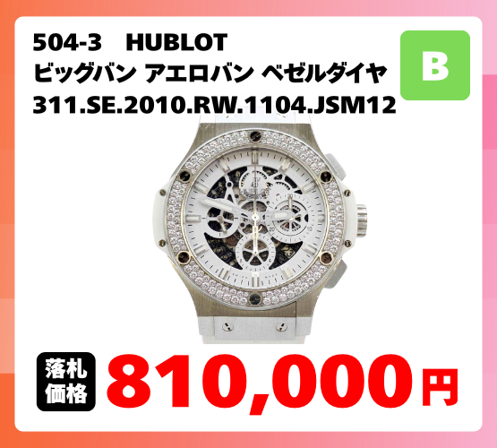 ウブロのビッグバンシリーズは、今回も安定した人気を見せました!特に注目したいのは、Bランクでも高値がつくという点です。