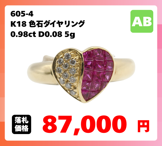 色石とダイヤモンドの組み合わせが華やかなリング。ABランクで8.7万円という価格は、18金の価値と宝石の質を考えるとお手頃な印象です。