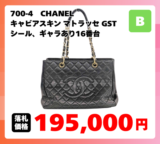 今回の最高額がついたのは、シャネルの定番中の定番、マトラッセのGST(グランドショッピングトート)!